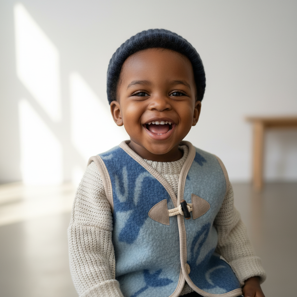 Duurzaam wollen gilet voor baby’s & kinderen - handgemaakt van oude dekens