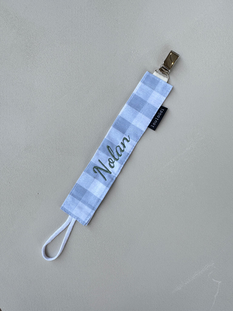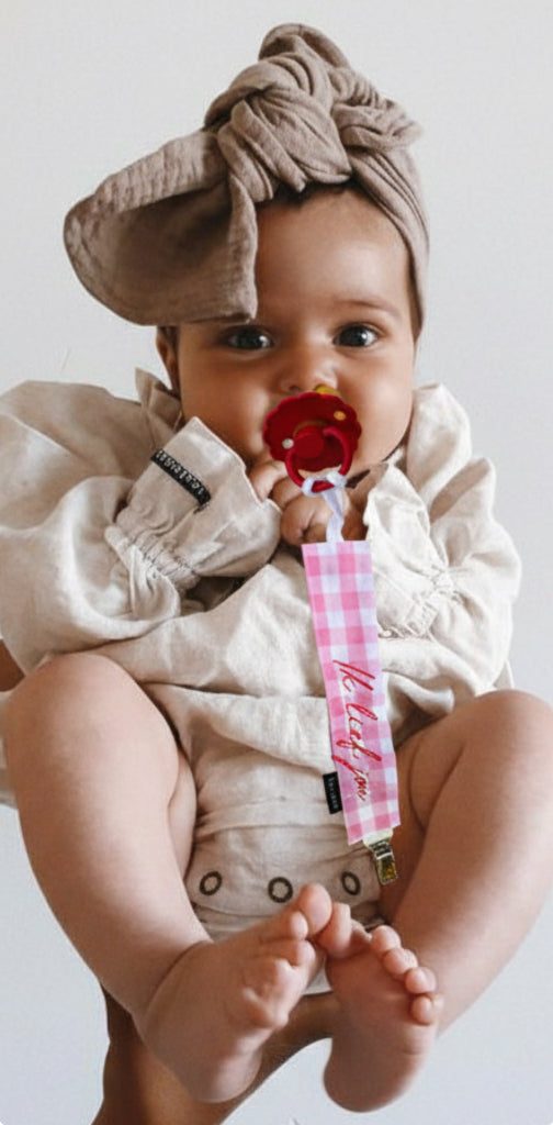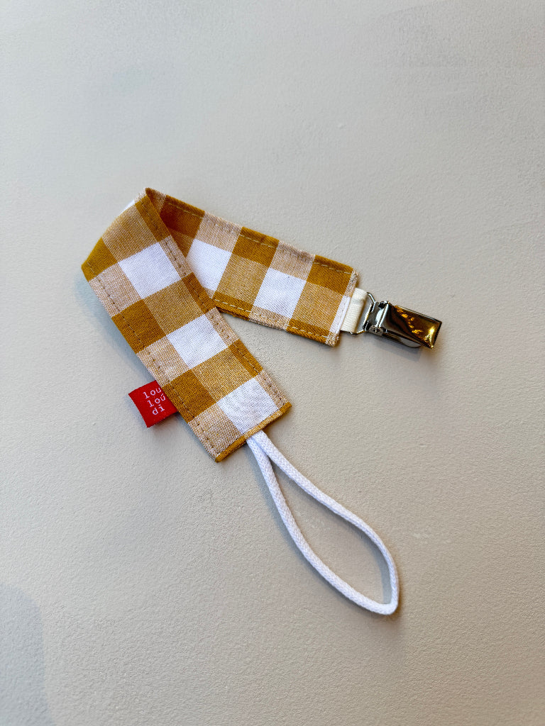 Ontdek onze veelzijdige fopspeenclip, ontworpen om spenen, bijtringen of speelgoed binnen handbereik en van de grond te houden! Met een lengte van ongeveer 33 cm biedt deze clip gemak en functionaliteit voor ouders en baby's. Beschikbaar in moderne kleuren: roze ruit, blauwe ruit en gele ruit.