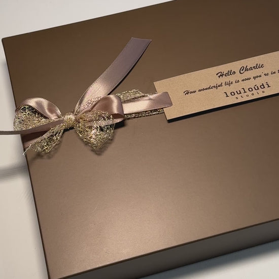 - Giftbox verpakking met gepersonaliseerd label en satijnen lint, om lieve babyherinneringen in te bewaren.
