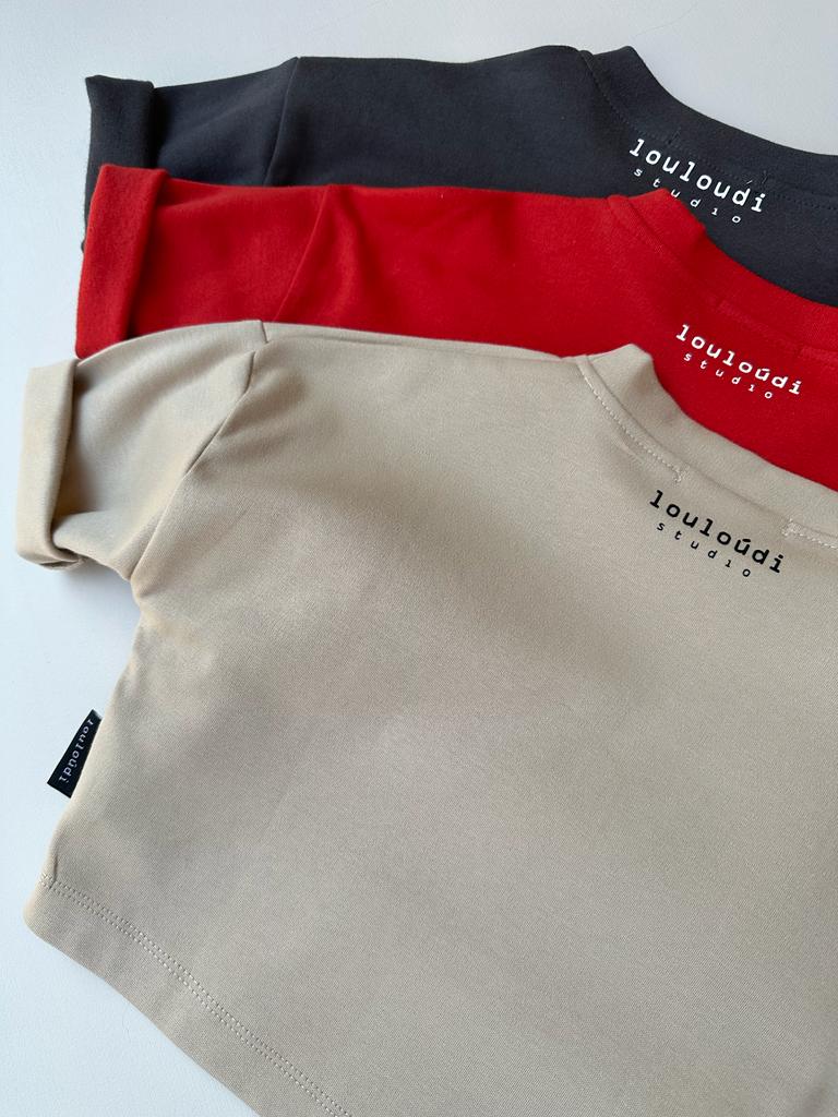 Dit duurzame T-shirt is onderdeel van de louloúdi collectie, waar comfort en stijl hand in hand gaan.